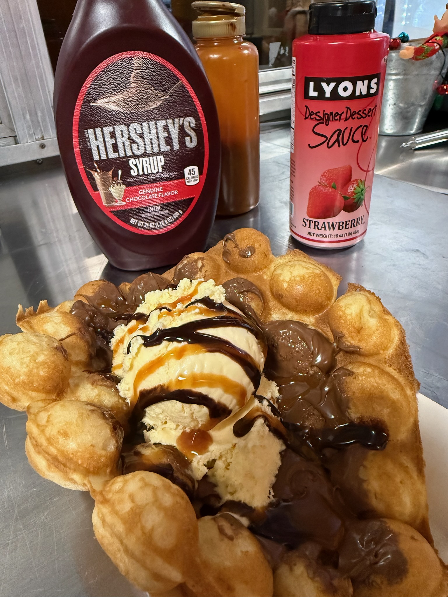 Rolled ice cream, Pizza cones, bubble waffles, Waffle dogs and floats