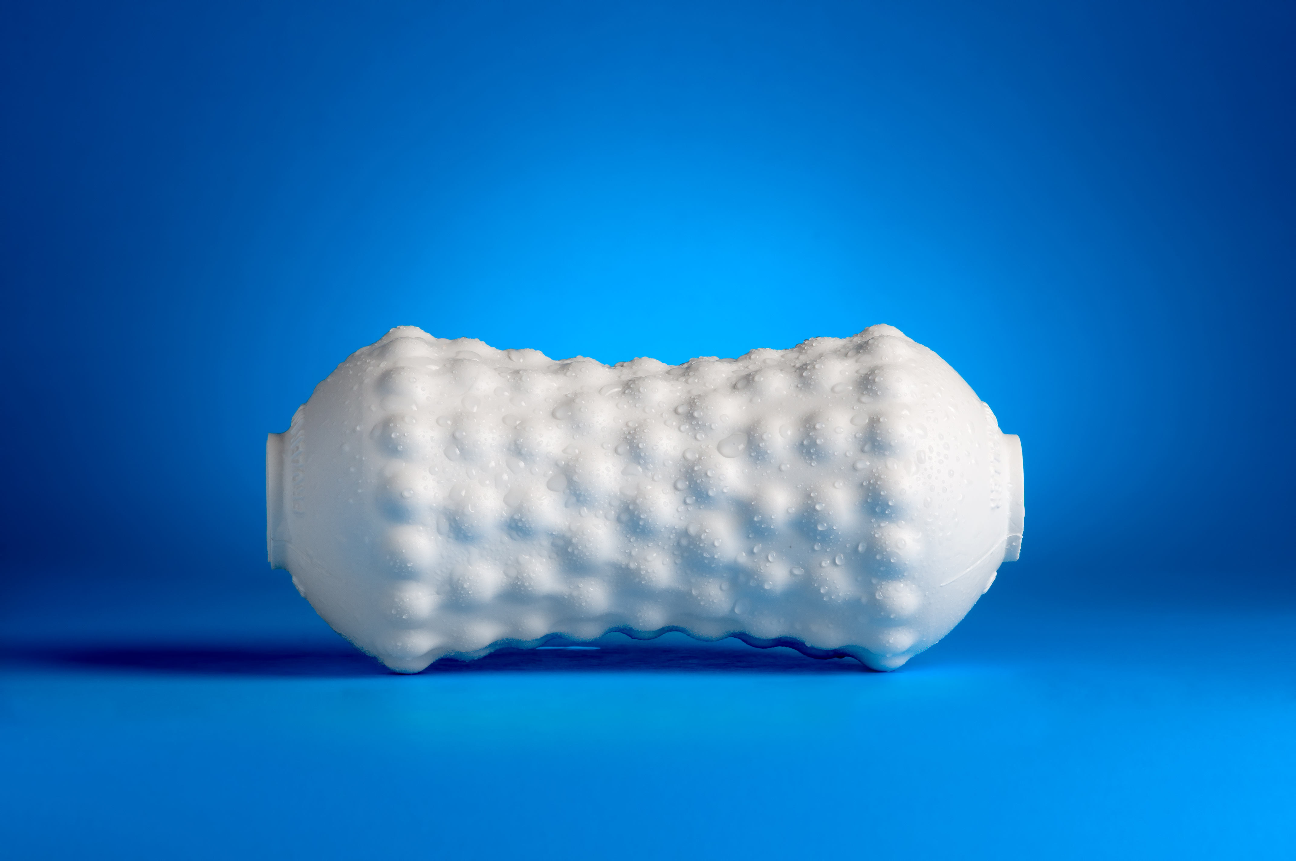 Frozen Roller is a hollow plastic figure eight cylinder that is filled with water that is put in the freezer overnight and then can be rolled under the foot or placed behind the neck to relieve tension headaches.