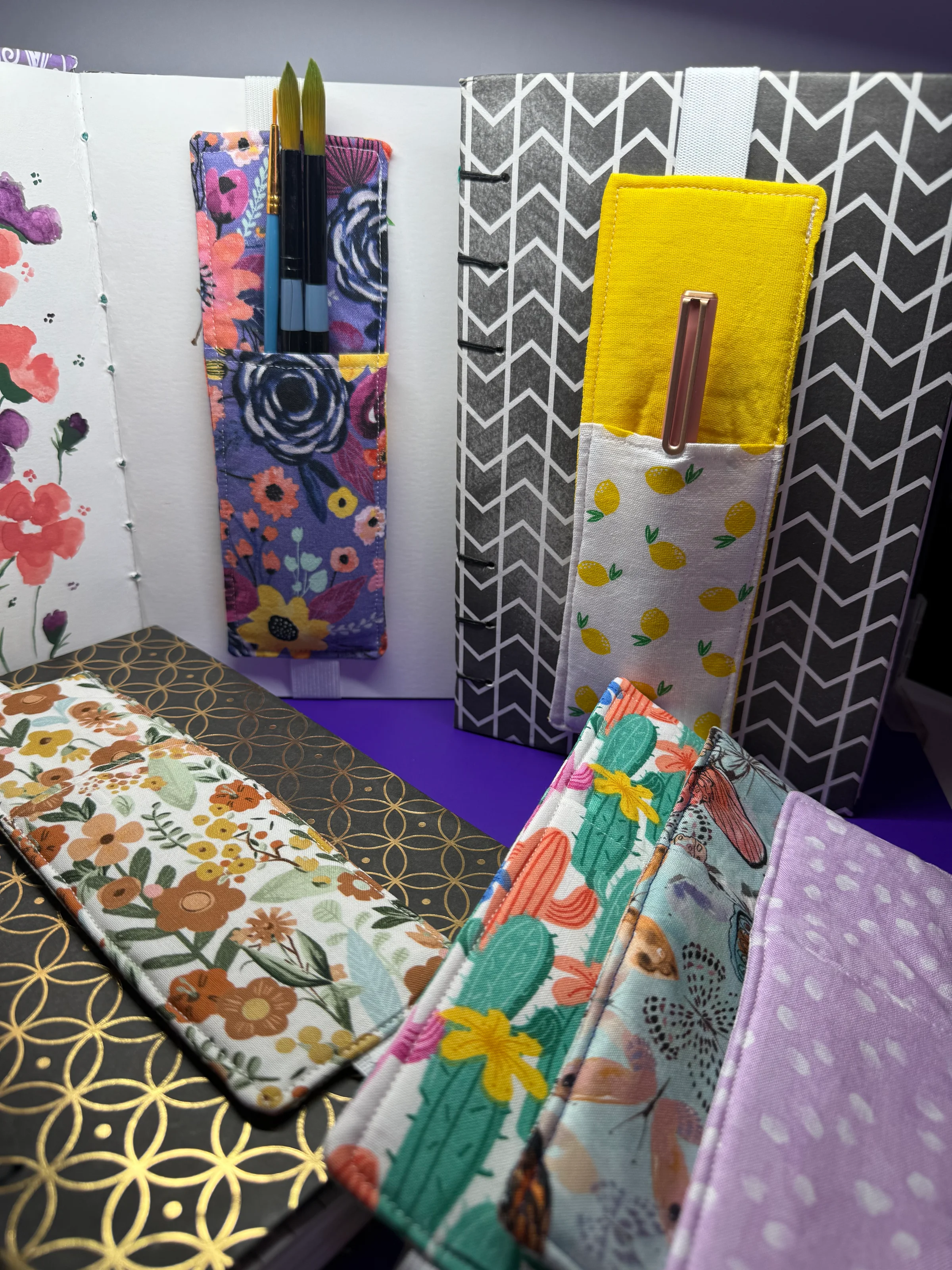 Handmade arts & crafts - watercolor cards, keychains, journal accessories, hand-bound journaling books, scrunchies.
