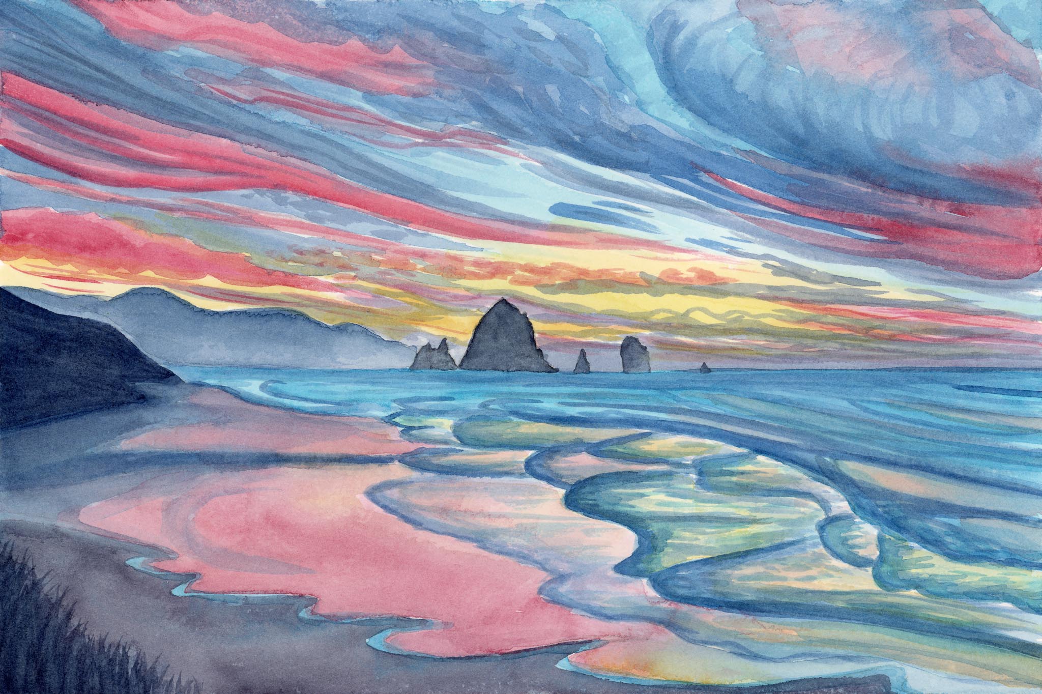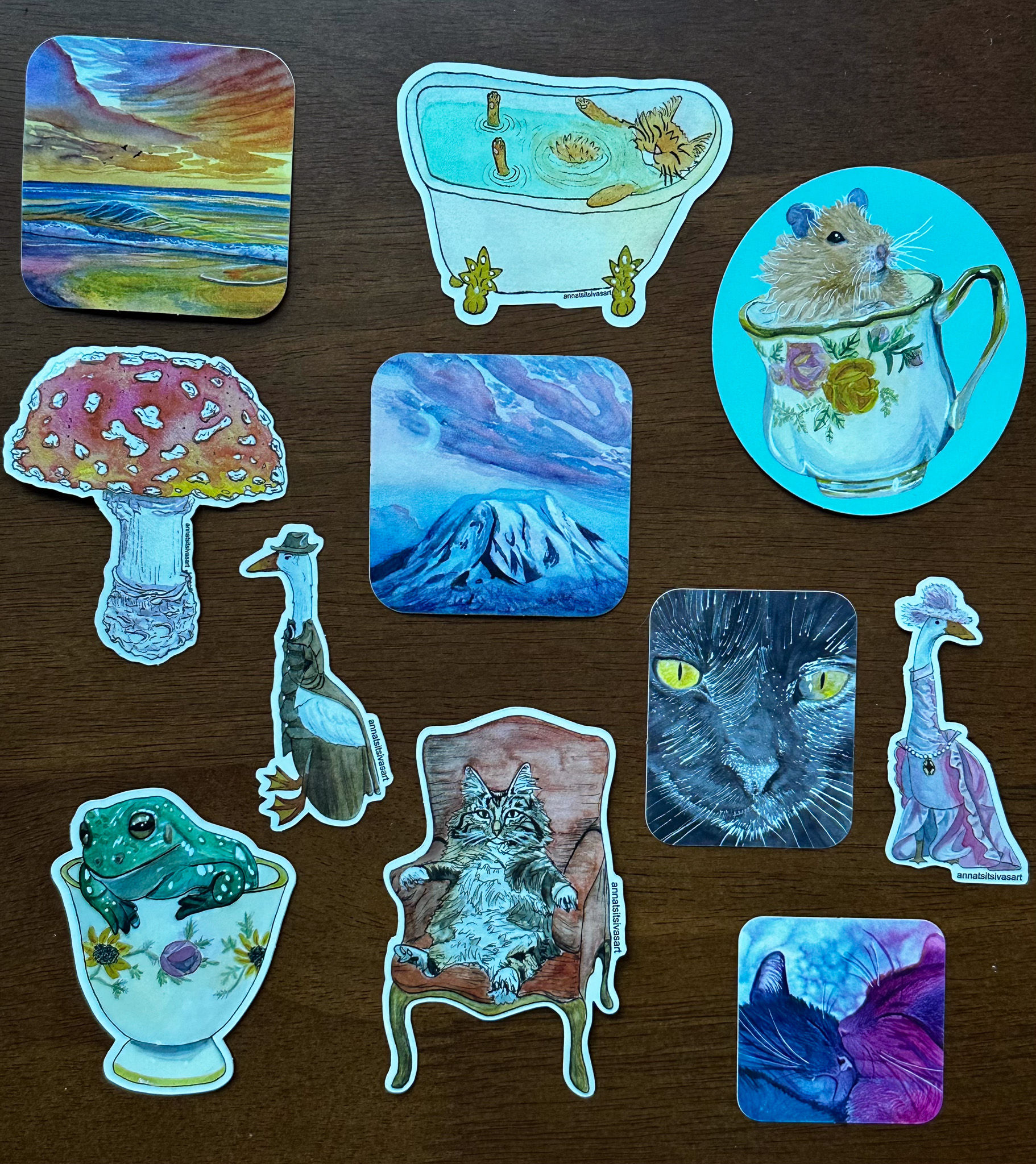 Watercolor painting prints, stickers, notebooks, greeting cards, postcards, and calendars. Art inspired by the PNW, cats, and nature.